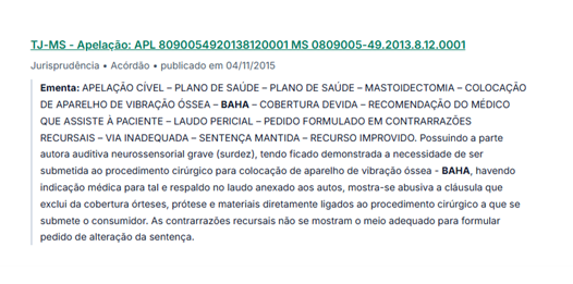 Decisões judiciais têm frequentemente determinado que tanto o SUS quanto os planos de saúde forneçam o Baha Softband a necessidade médica e a ausência de alternativas terapêuticas eficazes.