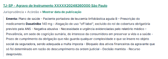 Em situações onde há recusa no fornecimento, os pacientes podem recorrer ao judiciário para garantir o acesso ao tratamento. Decisões judiciais têm frequentemente determinado que tanto o SUS quanto os planos de saúde forneçam o Dasatinibe (Sprycel) a necessidade médica e a ausência de alternativas terapêuticas eficazes.