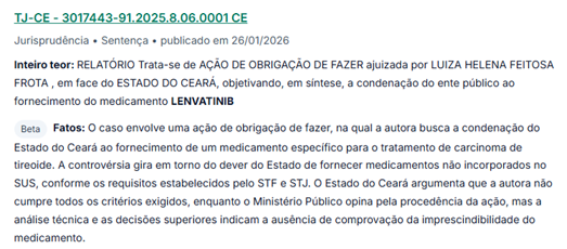 Em situações onde há recusa no fornecimento, os pacientes podem recorrer ao judiciário para garantir o acesso ao tratamento. Decisões judiciais têm frequentemente determinado que tanto o SUS quanto os planos de saúde forneçam o Lenvatinibe (Lenvima) a necessidade médica e a ausência de alternativas terapêuticas eficazes.