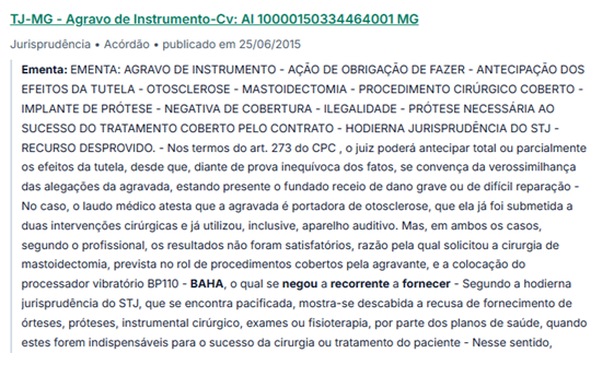 No contexto de fornecimento de medicamentos como o Baha Softband a liminar pode ser solicitada para que o SUS ou o plano de saúde forneça o medicamento antes da conclusão definitiva do processo.
