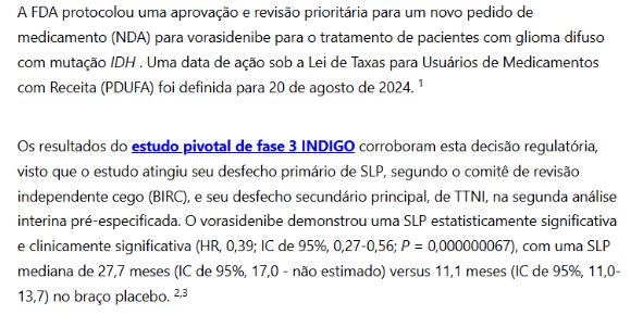O Vorasidenibe representa um avanço no tratamento de gliomas com mutação IDH, oferecendo uma abordagem inovadora, eficaz e mais direcionada em comparação aos tratamentos convencionais disponíveis anteriormente.