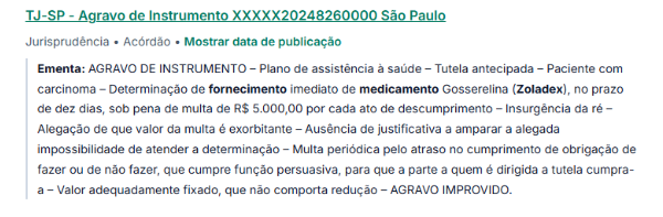 Sim, há diversas decisões judiciais favoráveis ao fornecimento do Zoladex (Gosserrelina).